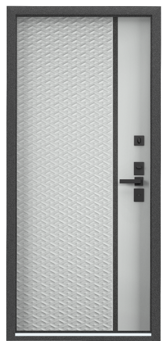 Дополнительное запирание обеспечивает девиатор, а гранитобетонный элемент в замковой зоне противостоит вандальному взлому двери.